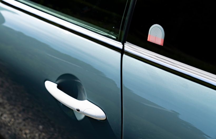 On the exterior of the vehicle, a graphic rainbow motif made up of Indian Summer Red and Sage Green colours can be found on the C-Pillar with matching-coloured designs also found on the side scuttle and door sills, and exclusive self-levelling wheel caps in a two-tone design.